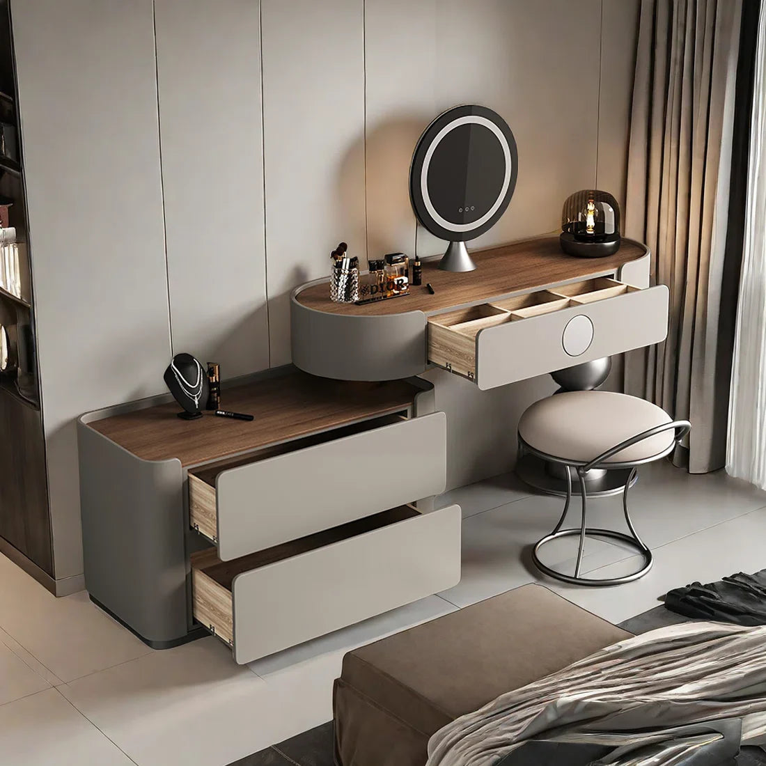 Conçue pour les femmes modernes, la Cassondra Vanity allie style contemporain et rangements ingénieux. Elle transforme chaque routine en moment privilégié où organisation rime avec plaisir. Un meuble qui sublime votre chambre et simplifie votre quotidien.