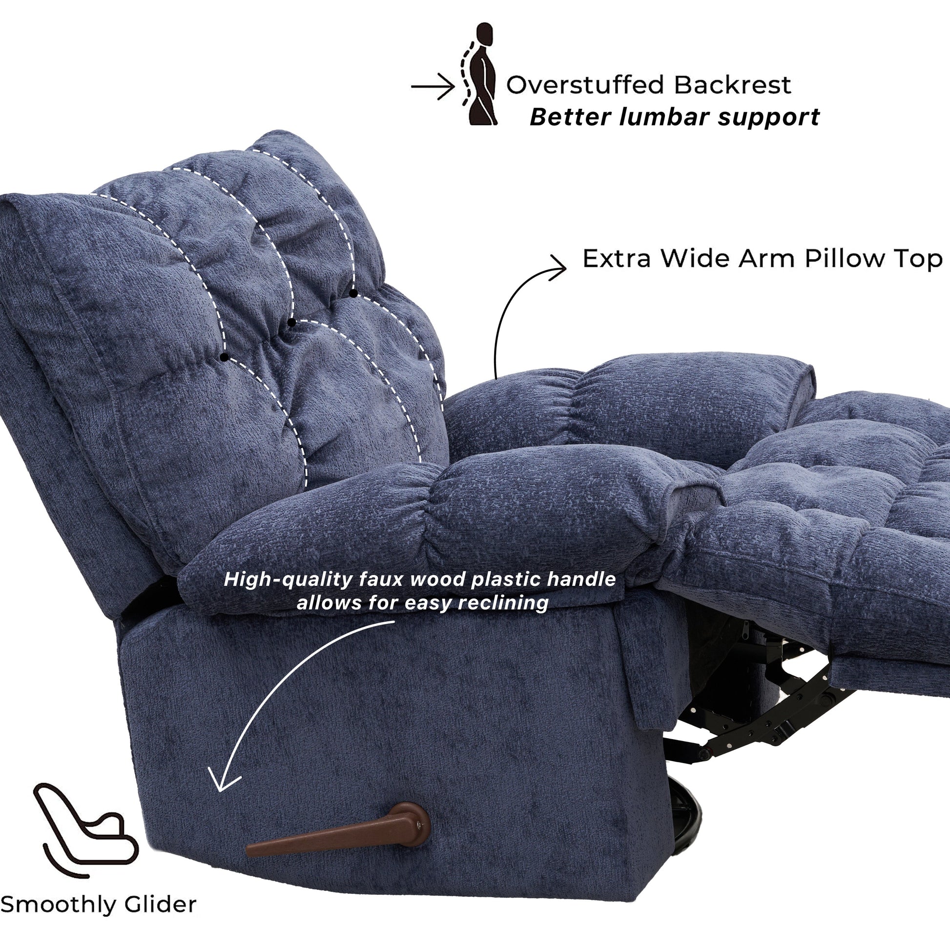 - ⏩ Lecture & détente : inclinaison en 3 positions (assis, lecture, incliné) avec levier silencieux d’une main.
