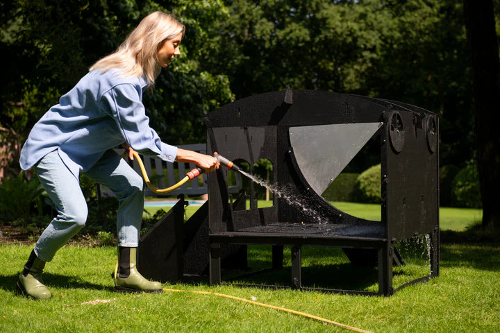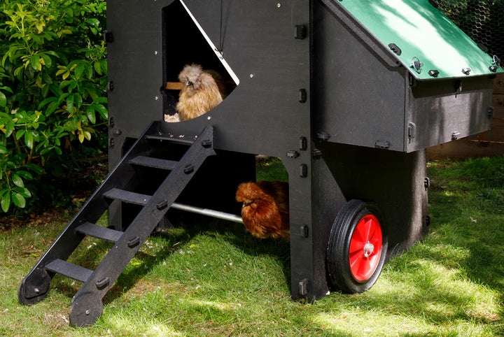 Nous savons que la corvée de nettoyage du poulailler n’est jamais amusante alors nous avons conçu nos poulaillers pour que cette tâche se réalise en quelques minutes. Le plastique recyclé que nous utilisons offre la possibilité de laver le poulailler avec un simple jet d’eau ou un laveur haute pression sans risque d’abîmer le poulailler contrairement à un poulailler en bois traditionnel qui s’abîme lors d’un nettoyage à l’eau.