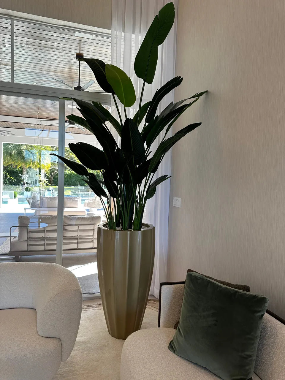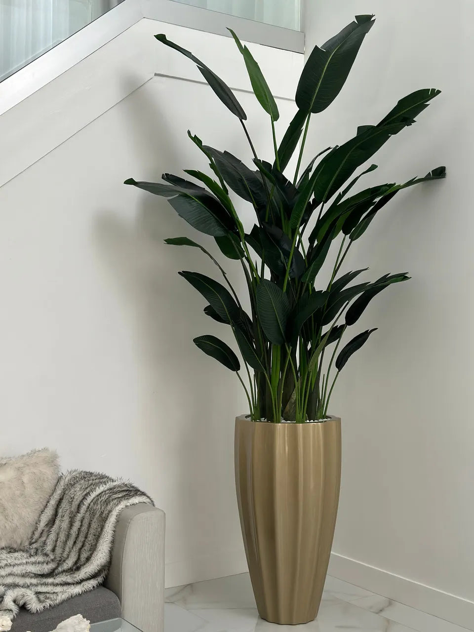 Inspirée par l’élégance des hôtels de luxe, cette jardinière champagne avec Oiseau de Paradis apporte une touche tropicale et sophistiquée à n’importe quel espace. Plus qu’une décoration, c’est une véritable invitation au voyage.