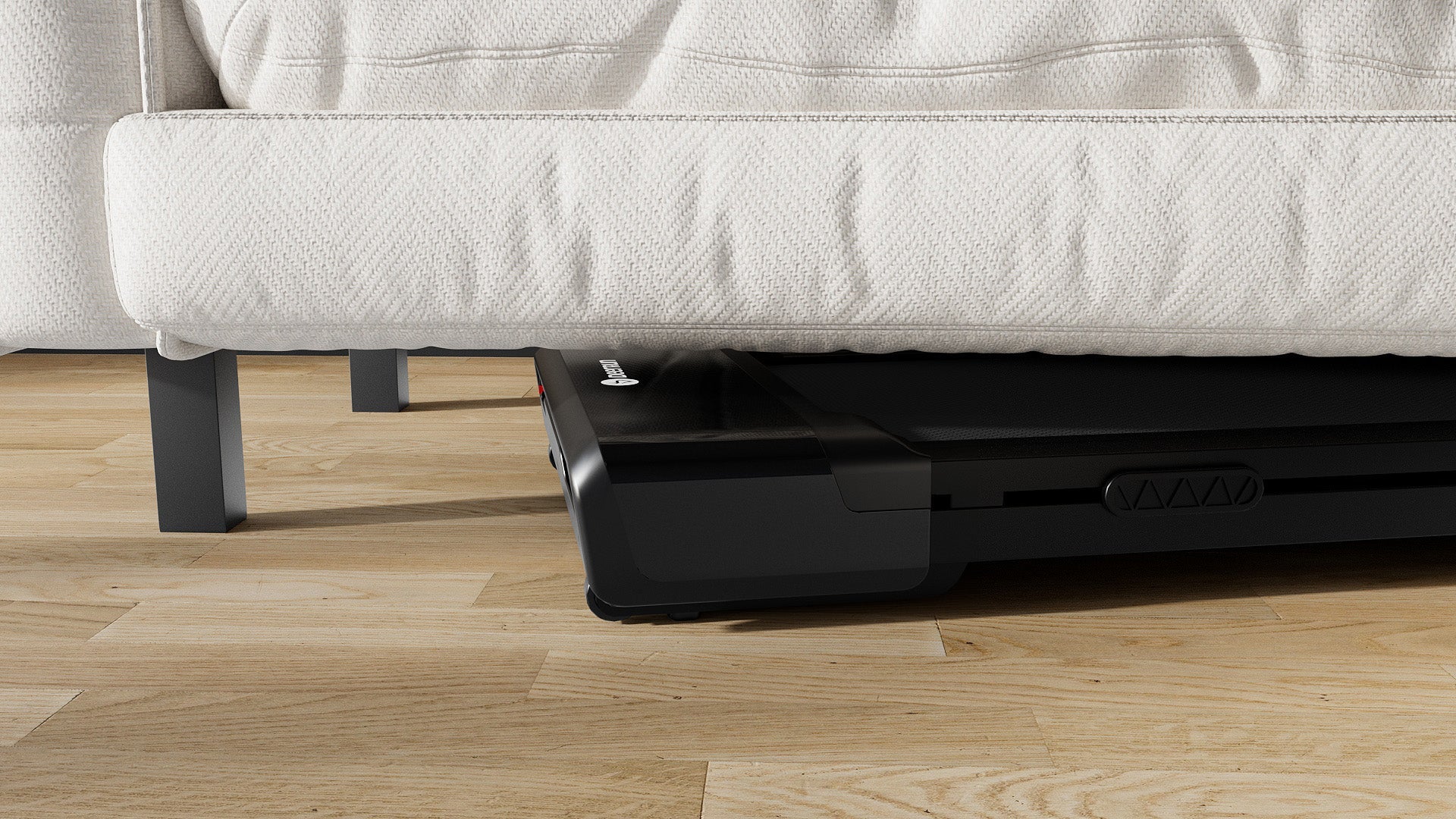 Avec une épaisseur de 15 cm, ce tapis de course peut être caché dans les espaces les plus restreints